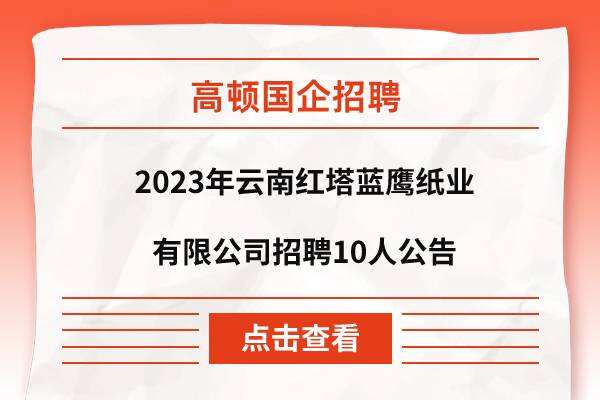 2023年云南红塔蓝鹰纸业有限公司招聘10人公告