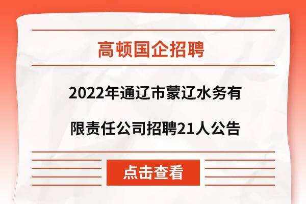 2022年通辽市蒙辽水务有限责任公司招聘21人公告