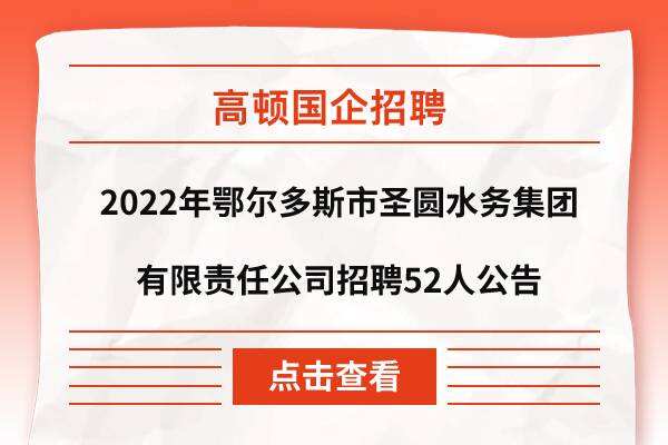 2022年鄂尔多斯市圣圆水务集团有限责任公司招聘52人公告