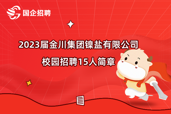 2023届金川集团镍盐有限公司校园招聘公告已经发布!2023届金川集团镍盐有限公司校园招聘报名截止时间:至2023年5月31日。本文提供了2023届金川集团镍盐有限公司校园招聘条件、薪资待遇等信息。...