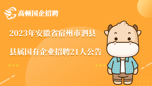 2023年安徽省宿州市泗县县属国有企业招聘21人公告