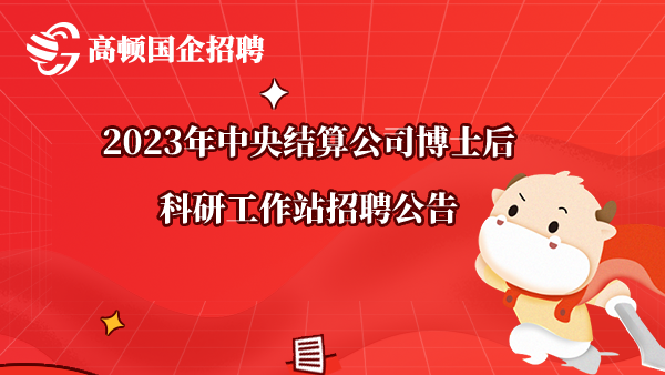 2023年中央结算公司博士后科研工作站招聘公告已经发布!2023年中央结算公司博士后科研工作站招聘报名截止时间:2023年4月23日。本文提供了2023年中央结算公司博士后科研工作站招聘条件、相关待遇等信息。...