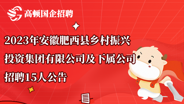 2023年安徽肥西县乡村振兴投资集团有限公司及下属公司招聘15人公告