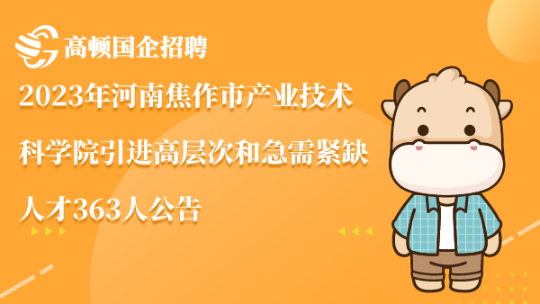2023年河南焦作市产业技术科学院引进高层次和急需紧缺人才363人公告
