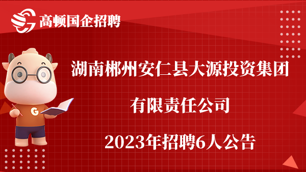 湖南郴州安仁县大源投资集团有限责任公司2023年招聘6人公告