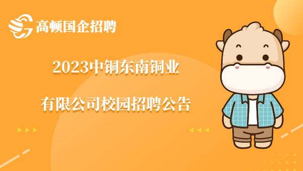 2023中铜东南铜业有限公司校园招聘公告已经发布!2023中铜东南铜业有限公司校园招聘条件:2023年应届本科及以上毕业生等。本文提供了2023中铜东南铜业有限公司校园招聘条件、招聘程序等信息。...