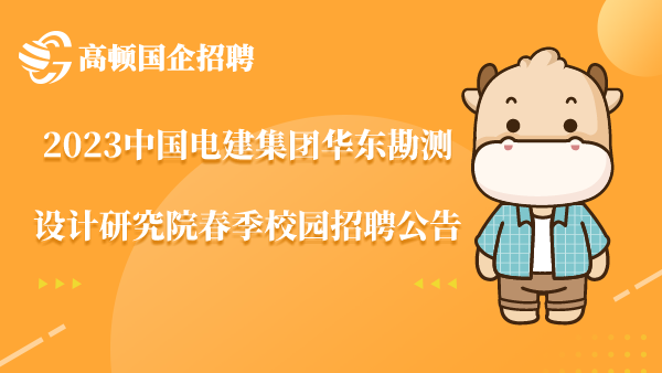 2023中国电建集团华东勘测设计研究院春季校园招聘公告已经发布!2023中国电建集团华东勘测设计研究院春季校园招聘职位:设计类、工程管理类、造价/合同管理类等。本文提供了2023中国电建集团华东勘测设计研究院春季校园招聘条件、招聘程序等信息...