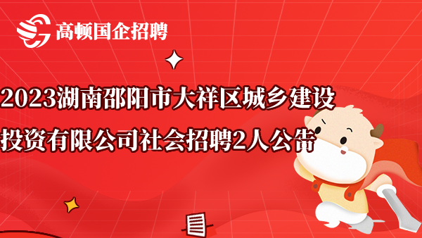 2023湖南邵阳市大祥区城乡建设投资有限公司社会招聘2人公告
