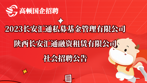 2023长安汇通私募基金管理有限公司陕西长安汇通融资租赁有限公司社会招聘公告