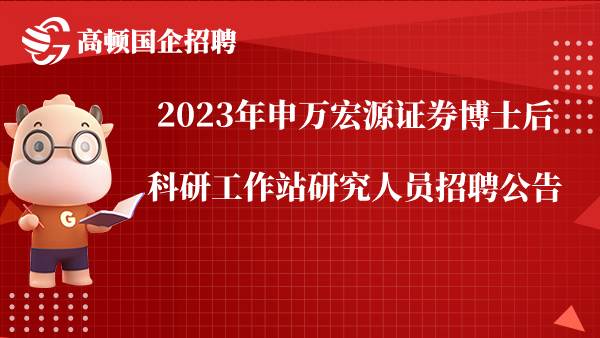 2023年申万宏源证券博士后科研工作站研究人员招聘公告