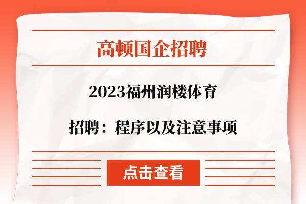 福建省福州市润楼体育产业发展有限公司成立于2020年9月,系鼓楼区国投集团全资子公司。2023福州润楼体育招聘招收程序:本次公开招聘采取网络报名方式,按简历筛选、面试(笔试)、入职体检、公示、录用等步骤进行。...