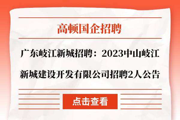广东岐江新城招聘:2023中山岐江新城建设开发有限公司招聘2人公告