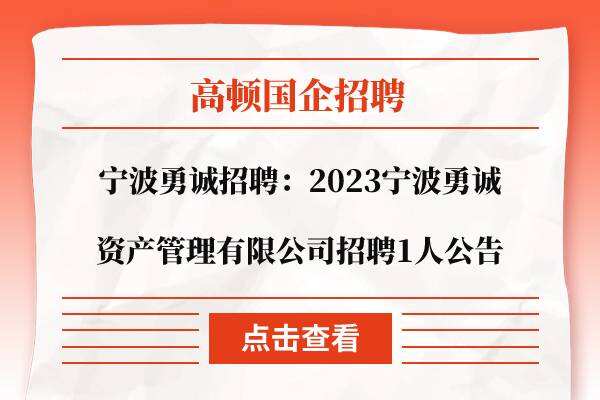 宁波勇诚招聘:2023宁波勇诚资产管理有限公司招聘1人公告