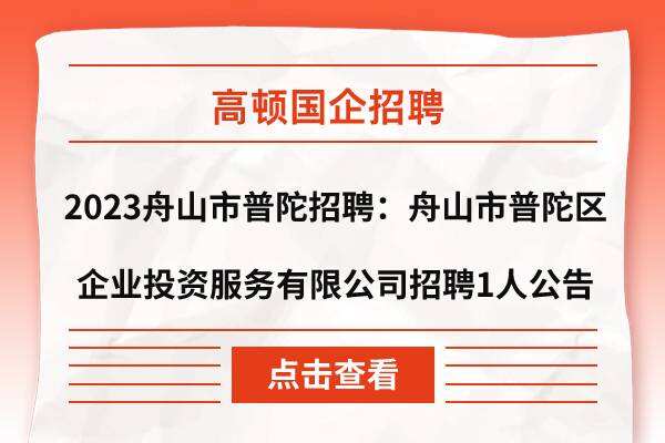 2023舟山市普陀招聘:舟山市普陀区企业投资服务有限公司招聘1人公告