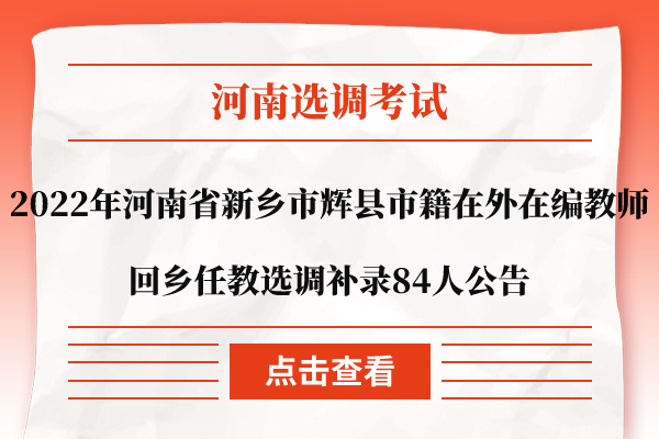 2022年河南省新乡市辉县市籍在外在编教师回乡任教选调补录84人公告