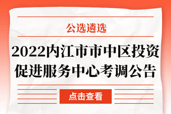 为拓宽选人视野,广纳优秀人才,优化干部队伍结构,内江市市中区投资促进服务中心(以下简称区投促中心)拟面向内江市公开考调工作人员,现将有关事项公告如下。...