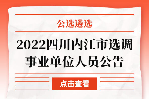 根据《四川省事业单位工作人员招聘工作试行办法》(川人发〔2006〕9号)和《内江市东兴区事业单位工作人员流动管理办法》等文件规定,按照公开、平等、竞争、择优原则,面向东兴区公开选调事业单位工作人员3名。...
