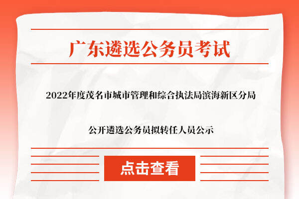2022年度茂名市城市管理和综合执法局滨海新区分局公开遴选公务员拟转任人员公示