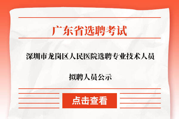 深圳市龙岗区人民医院选聘专业技术人员拟聘人员公示