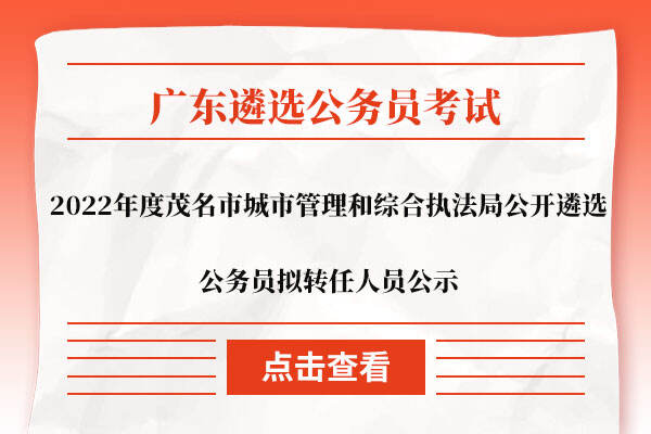 2022年度茂名市城市管理和综合执法局公开遴选公务员拟转任人员公示