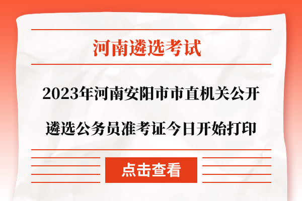 2023年河南安阳市市直机关公开遴选公务员准考证今日开始打印