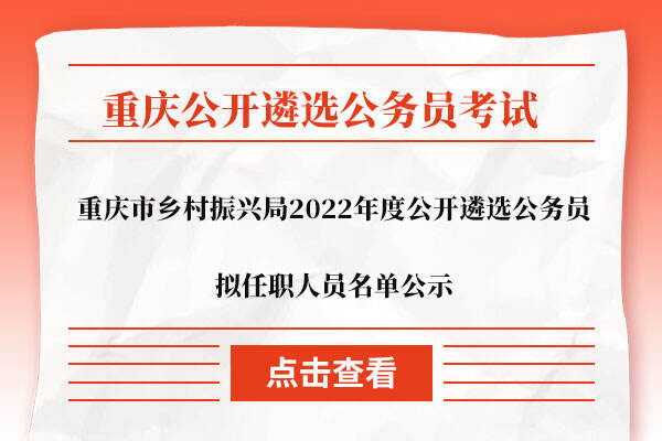 重庆市乡村振兴局2022年度公开遴选公务员拟任职人员名单公示