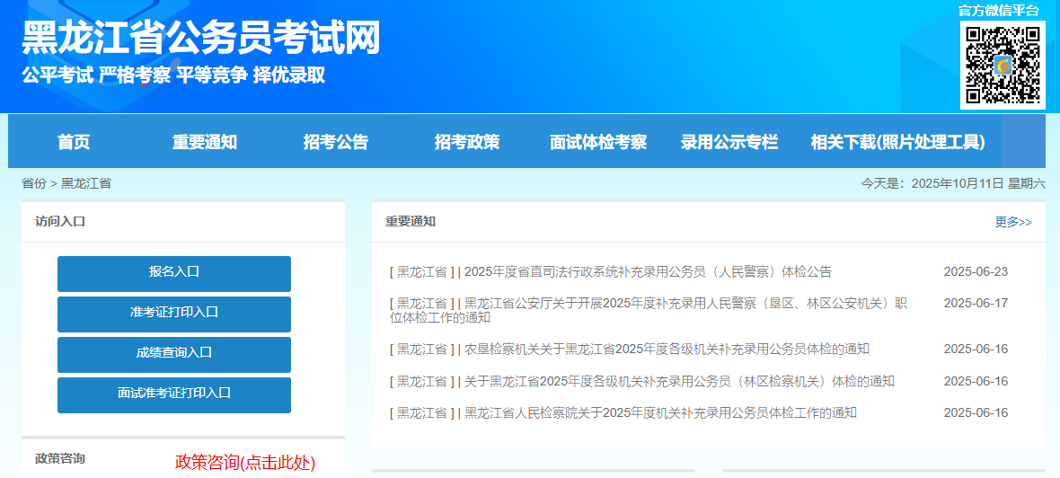 黑龙江省公务员考试的唯一官方报名入口是黑龙江省公务员考试网,网址为:http://www.hljsgwy.org.cn。在这个网站上,考生可以进行报名、查询职位信息、查看公告以及打印准考证等操作。建议大家提前收藏这个网址,报名期间尽量避开高峰期登录,以免耽误报名。