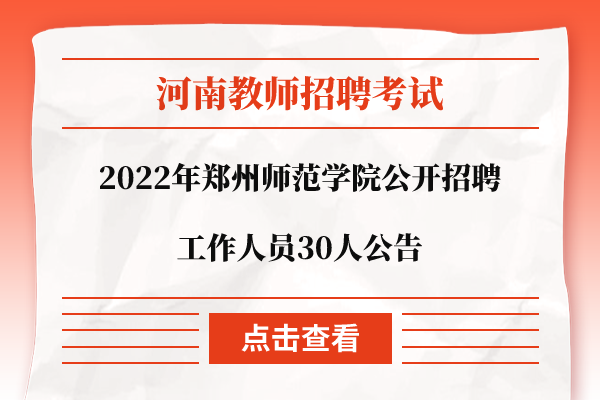 郑州师范学院根据学校发展规划和教师队伍建设的需要,经研究并报郑州市人力资源和社会保障局批准,现面向社会公开招聘30名工作人员。具体公告如下:...
