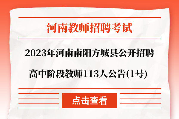 2023年河南南阳方城县公开招聘高中阶段教师113人公告(1号)