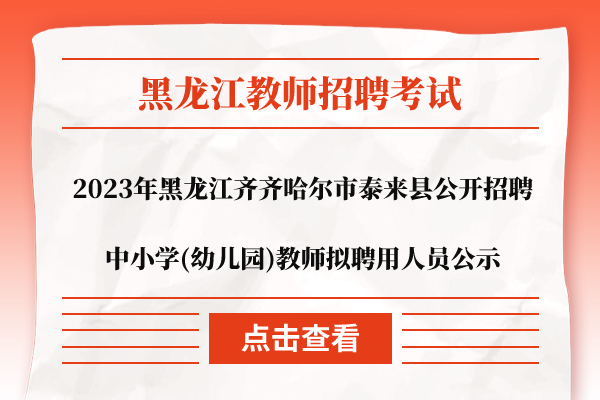 2023年黑龙江齐齐哈尔市泰来县公开招聘中小学(幼儿园)教师拟聘用人员公示