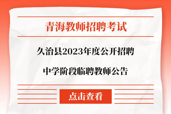2023青海省久治县公开招聘中学阶段临聘教师公告(8名)