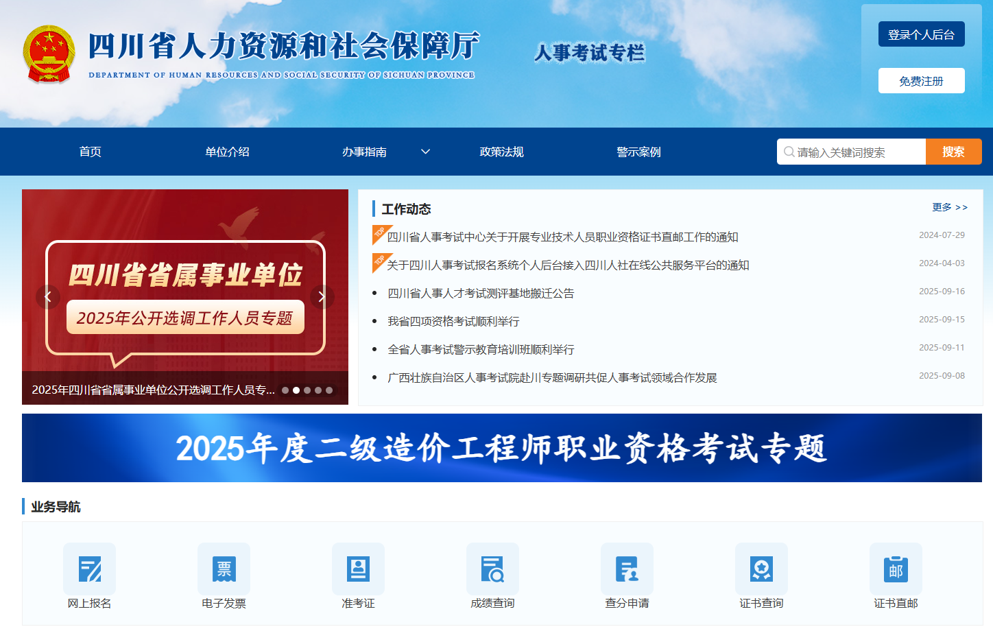 2026年四川省公务员考试的官方报名网站主要为四川省人力资源和社会保障厅官网(http://rst.sc.gov.cn/),考生需在该网站的“人事考试”专栏完成报名操作。此外,四川人事考试网(http://www.scpta.com.cn/)也会同步开放报名入口。部分地市还会在其独立的人事考试专栏或组工网(如成都人事考试网、绵阳人事考试网等)同步发布相关信息,考生可选择相应的地市入口进行报名。