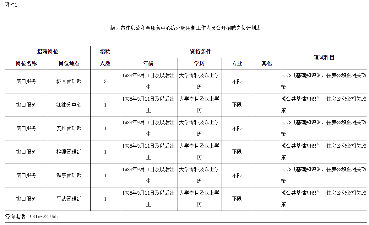附件:1.绵阳市住房公积金服务中心编外聘用制工作人员公开招聘岗位计划表