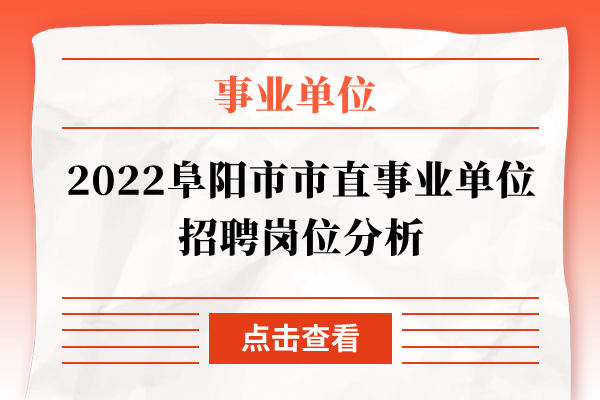 各位报考了安徽阜阳市市直事业单位招聘考试的小伙伴们,报名早已结束了,那什么时候考试呢?具体的考试科目和内容是什么呢?对此了解还不是很清楚的考生们,可以和小编一起来看看2022阜阳市市直事业单位招聘岗位分析的相关内容。...
