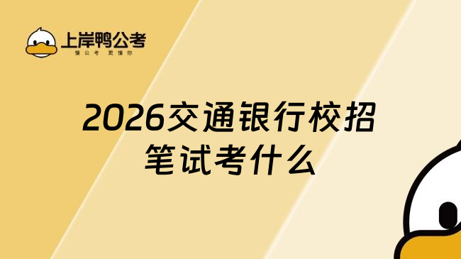 2026交通银行校招笔试考什么?参考往年笔试考情,交通银行校招笔试内容主要包括EPI、综合知识、英语、职业性格测试,接下来小编为大家详细解析交通银行笔试内容,也准备了一份详细备考攻略快来看看吧。