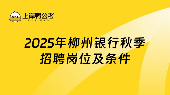 2025年柳州银行秋季招聘已开启,本次招聘面向2026届毕业生和有工作经验的社会人士,招聘岗位多多,特别优秀者学历可放宽到全日制大专,报名时间截至2025年11月14日18点。小编整理了2025年柳州银行秋季招聘岗位及条件,一起来看看吧!