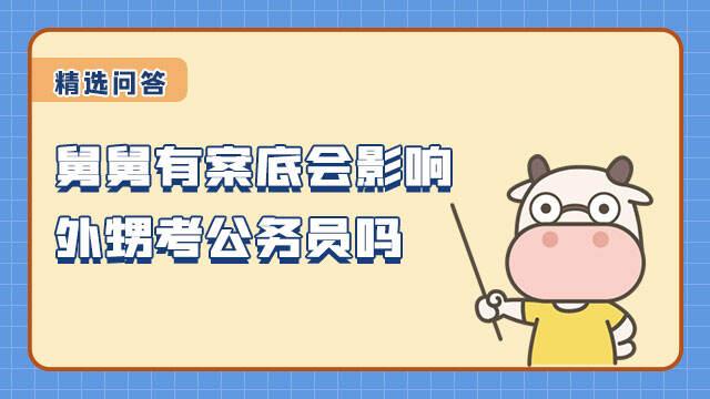 估计有些考生担心因为亲戚受到惩罚而影响自己公务员政审,现在公务员考试网小编就给大家解释一下,到底会不会影响考公务员?首先,明确一点,舅舅有案底一般不会影响外甥考公务员。大家可以放心!