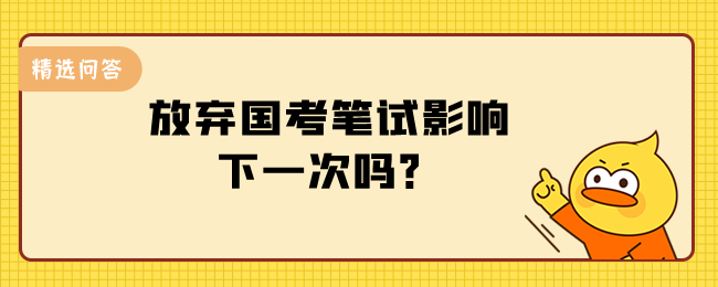 放弃国考笔试不会影响下一次考试。参加考试时未按规定时间入场、离场的,考试机构将给予其所涉科目(场次)考试成绩为零分的处理,所以笔试当天考生不去参加笔试,或因迟到等其他问题没有参加考试的,视为自愿放弃考试,弃考科目会按照零分处理,对以后报考公务员考试没有影响,自愿弃考的考生,考务费不予退还。