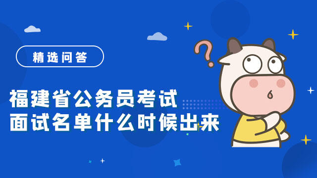 福建省公务员考试面试名单在笔试考试结束后两个月左右陆续发布。参加面试的考生名单和面试的时间、地点将按招录单位的隶属关系在福建省公务员考试录用网或各设区市网站上公布,并由招录单位另行通知。报考者也可电话咨询招录单位。...