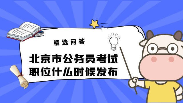 北京市公务员考试职位一般在11-12月份左右随考试公告发布,各招录机关的招考人数、具体职位、考试类别、资格条件等详见《北京市各级机关考试录用公务员招考简章》,报考者可以通过首都之窗网站、北京组工网站查阅。...