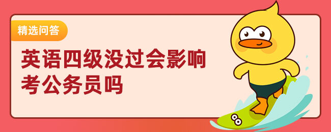 不影响。英语四级没过是可以考公务员的,公务员考试并没有英语四级要求,除非报考的岗位在报考条件中明确写着要求通过四级,如果没注明的话,就是不对英语水平有要求,只要符合其它条件就可以了。...