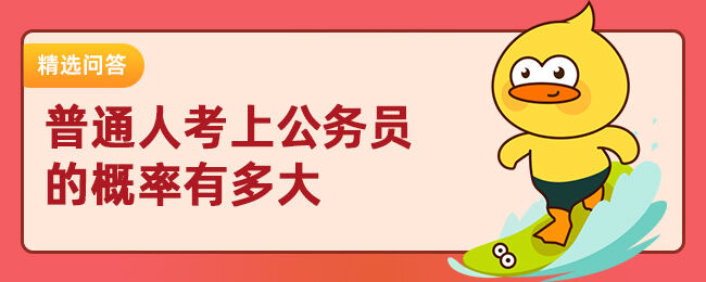 普通人考上公务员的概率视个人情况而定,但总体而言考上的难度还是比较大的,由于每年的报考人数都比较多,报名人数可以高达一百多万人,可是招录的人数可能只在一万人左右。很多岗位招聘一个人往往会有几百人竞争。...