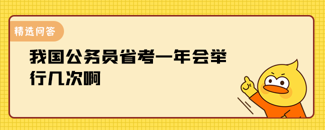 公务员省考一般一年考一次或两次,一般都会在上半年举行,部分省市及地区会参加上半年多省公务员考试联考,考试时间一般安排在4月份左右的时间。有些省市及地区会一年考两次,上下半年各一次。...