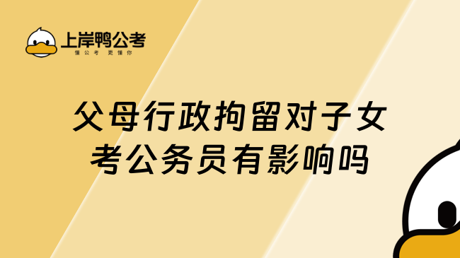 没有,报考公务员只需要本人提供无罪证明即可,因此与父母是否被行政拘留无关。只有父母被刑事处罚过,留下了案底,才会对子女有一定的影响。下列人员不得录用为公务员:(一)因犯罪受过刑事处罚的;(二)被开除中国共产党党籍的;(三)被开除公职的;(四...