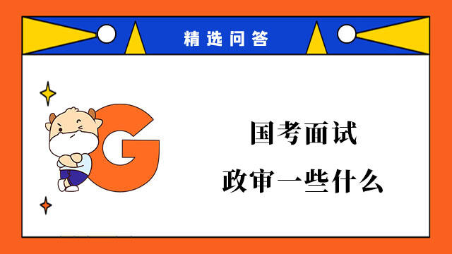 国考面试政审的具体内容包括:家庭出身(父母亲和爷爷、奶奶的成分,有无海外关系、是什么样的海外关系)和本人的政治思想表现、在历次政治运动中的表现、有无受奖励或处分的情节、道德品质、缺点和不足、直系血亲和对本人有重大影响旁系血亲的政治历史情况等...