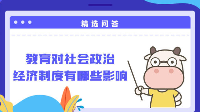 教育与政治经济制度是相互制约的关系,一定的社会经济制度决定着教育,而教育有对社会经济制度产生一定的积极影响和作用。1.社会政治经济制度决定教育的性质;2.社会政治经济制度决定教育的领导权;3.社会政治经济制度决定教育的受教育权;4.社会政治...