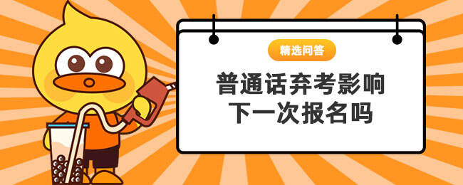 不影响。普通话弃考不影响下一次报名。没有参加考试不计入成绩,下次有机会重新报考即可。根据《普通话水平测试管理规定》,应试人再次申请接受测试同前次接受测试的间隔应不少于3个月。...