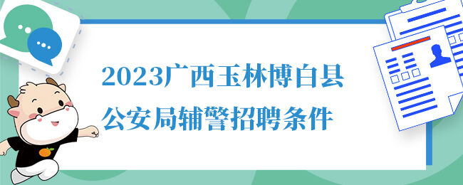 2023广西玉林博白县公安局辅警招聘条件为具有中华人民共和国国籍;年满18周岁及以上,35周岁及以下;具有良好的政治素质和道德品行;具有高中以上文化程度;法律、法规规定的其他条件。...