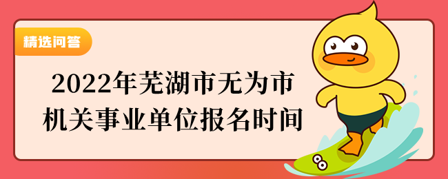 报名时间是2022年6月23日—7月1日;报名方式为现场报名。报名人员携带报名材料在报名时间段到无为市公共就业和人才服务中心(无城镇裕溪路与幸福路交叉口公共就业和社会保障服务中心三楼)现场办理报名手续;报名方式是线上报名。填写电子版报名表等...