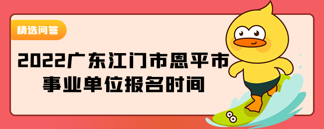 2022广东江门市恩平市事业单位报名时间为2022年6月21日9:00至6月23日17:00,采用网上报名方式。报名系统24小时开通,报名页面从“恩平市人力资源和社会保障局网站”(http://www.enping.gov.cn/gzjg/...